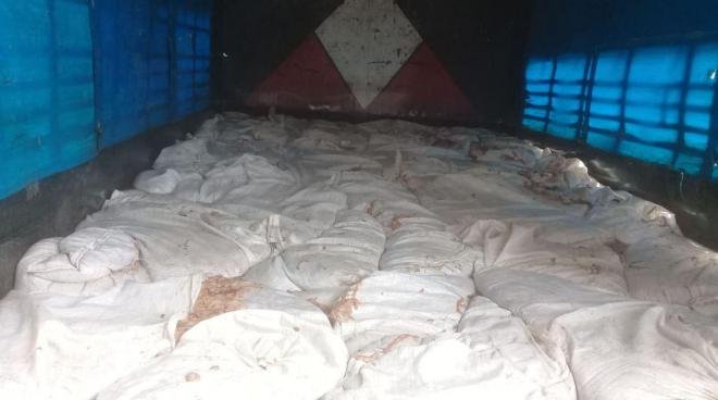 “من خلال الاستقصاءات والتحريات، تمكّنت مفرزة استقصاء البقاع في وحدة الدرك الإقليمي من ضبط كمية كبيرة من أحشاء الدجاج، تُقدّر بثلاثة أطنان، والتي كانت مُرسلة من محافظة الشمال، على متن سيارة “بيك أب”، إلى مدينة الهرمل، بغية إيصالها الى عددٍ من مالكي الأحواض لإطعامها للأسماك، الأمر الذي يلحق ضرراً بصحة المواطنين وبالثروة السمكية، إضافةً إلى الضرر الذي تُشكِّله على البيئة.