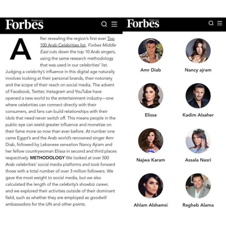 تصدّرت النجمة اللبنانية نانسي عجرم قائمة أكثر الفنانات تأثيرًا ونجاحًا في الشرق الأوسط، وذلك بحسب مجلة Forbes – فوربس العالمية.