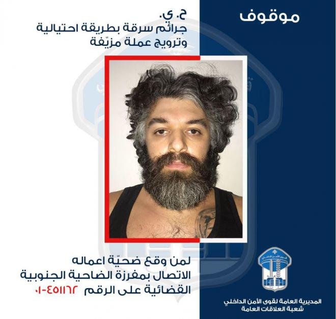 وأضافت: “لذلك، وبناءً على إشارة القضاء المختص، تُعمّم المديرية العامة لقوى الأمن الداخلي صورته، وتطلب من الذين وقعوا ضحية أعماله، الحضور إلى مركز المفرزة المذكورة، الكائن في ثكنة الشهيد مصطفى علي حسن – الاوزاعي، أو الاتصال على الرقم: 451162-01 تمهيداً لاتخاذ الإجراءات القانونية اللازمة”.