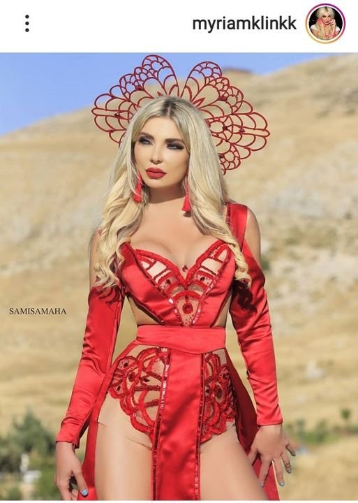 ما زالت الفنانة ميريام كلينك تثير الجدل بإطلالاتها الجريئة والمثيرة، حيث شاركت متابعيها عبر حسابها في انستغرام صور جديدة لها وهي ترتدي فستان احمر اشبه بالبكيني مفتوح من الأمام كشف اغلب مناطق جسدها، وارتدت كعب احمر، ووضعت مكياج احمر صارخ زاد اطلالتها إثارة، وشعرها منسدل باللون الأشقر الفاتح، وظهرت بالصورة وهي تقف عند كابينة اتصالات وكتبت “فستان أحمر ساخن صمم للملكة”.