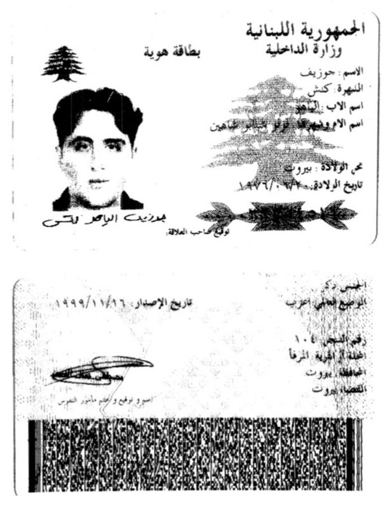 1 – صورة عن بطاقة هوية لجوزيف إلياهو كلش صادرة في بيروت بتاريخ 16 تشرين الثاني 1999.