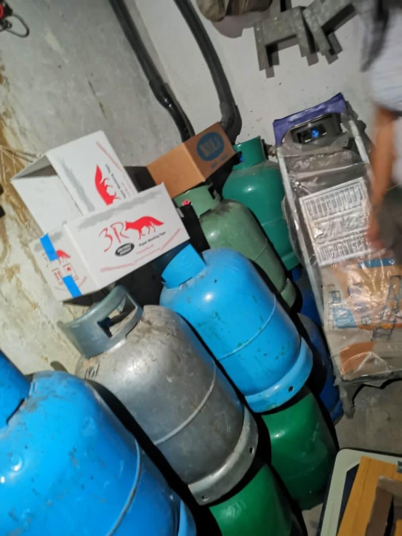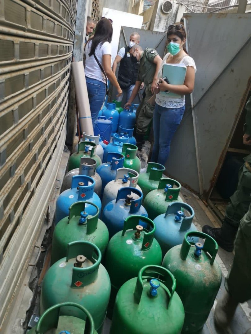 وعلى الفور قامت قوة من فوجي اطفاء وحرس بيروت برفقة مراقبي المؤسسات المصنفة في بلدية بيروت بمصادرة 57 قارورة غاز حجم صغير، وحوالي 19 قارورة غاز حجم كبير بالاضافة الى 3 غالونات من مادة المازوت و 3 غالونات من مادة البنزين سعة كل واحد منهم 20 ليتر.