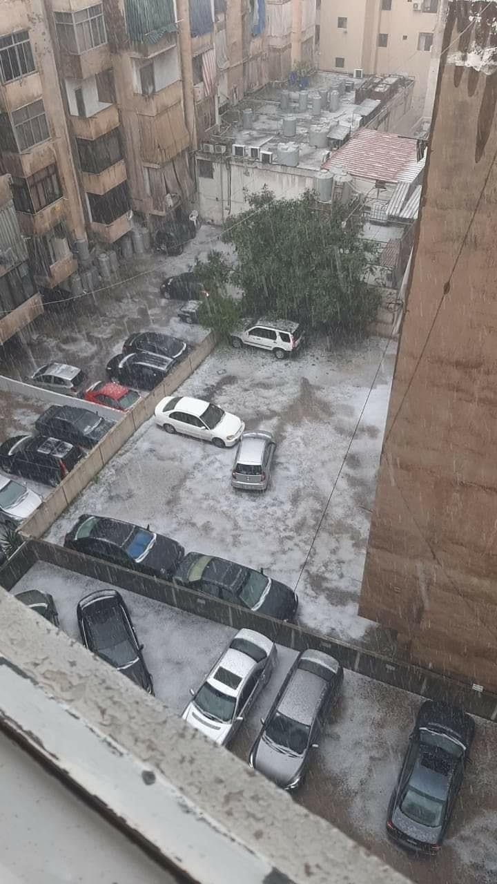 كما تساقطت حبات البرد في بيروت وضواحيها.
