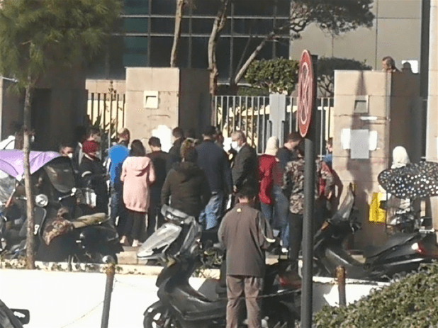 يشهد مدخل وزارة التربية والتعليم العالي في منطقة “الأونيسكو” – بيروت، تجمعاً للمواطنين خارج مبنى الوزارة حيث لم يُسمح لهم بالدخول لإنهاء معاملاتهم، ما أدّى إلى تجمعهم في الخارج من دون أي تباعد اجتماعي في ما بينهم.