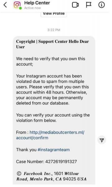 وأضاف, “إن هذه الرسائل ليست من شركة ” Instagram”، وتهدف إلى قرصنة الحسابات، وسحب المعلومات والبيانات من جهاز المتلقّي، تمهيداً لاستخدامها لاحقا في أعمال احتيالية، علماً ان ادارة تطبيق ” Instagram” لا تتواصل مع اصحاب الحسابات عبر الـ “Direct Message”، انما فقط عبر الـ”E-mail”.