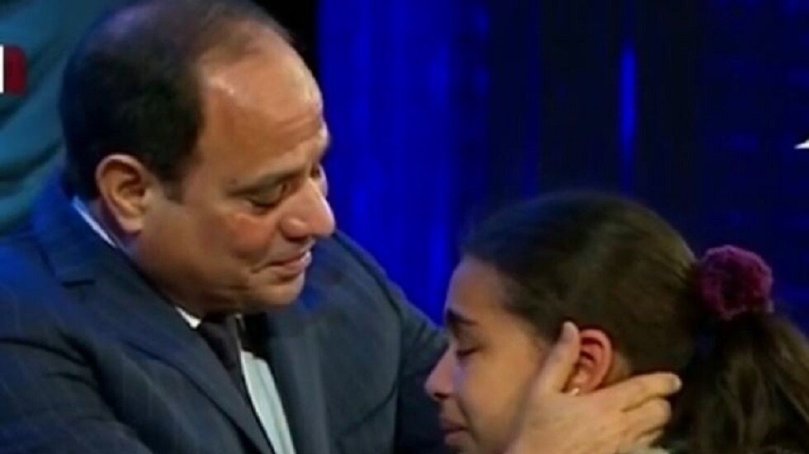 واحتضن الرئيس المصري الطفلة الصغيرة على المسرح خلال صعودها مع والدتها لتسلم درع تذكاري من السيسي، حيث بكت بشدة، وقام الرئيس المصري باحتضانها ومسح دموعها، حيث كادت الطفلة أن تبكيه من شدة تأثره بهذا الموقف.