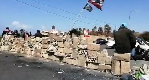 اقدم عدد من المحتجين على بناء جدار في وسط طريق البالما-طرابلس.