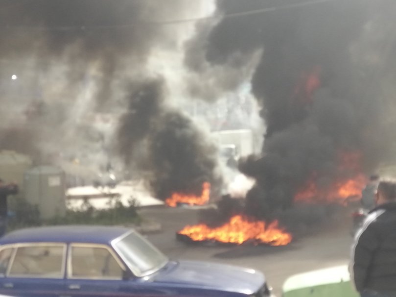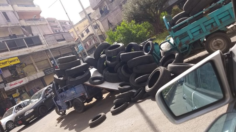 وفي التفاصيل, “قامَ المُحتجّين بتحميل الدواليب على الـ “توك توك” لنشرها في المنطقة”.