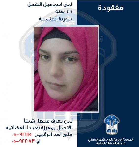 تُعمّم المديرية العامة لقوى الأمن الداخلي، بناءً على إشارة القضاء المختص، صورة المفقودة: