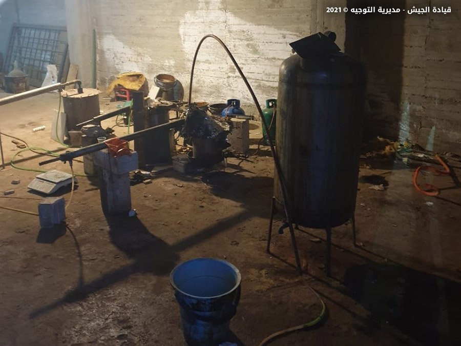 أعلنت قيادة الجيش أنه بتاريخ “24/04/2021 دهمت وحدة من الجيش مع مجموعة من مديرية المخابرات في محلة الشراونة – بعلبك، منازل عدد من المطلوبين ومعملاً بداخله معدات وآلات لتصنيع المواد الأولية لإنتاج المخدرات (كبتاغون)”.