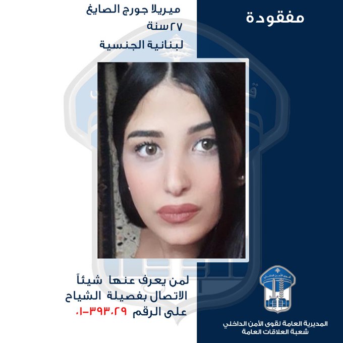 تُعمّم المديرية العامة لقوى الأمن الداخلي، بناءً على إشارة القضاء المختص، صورة المفقودة: