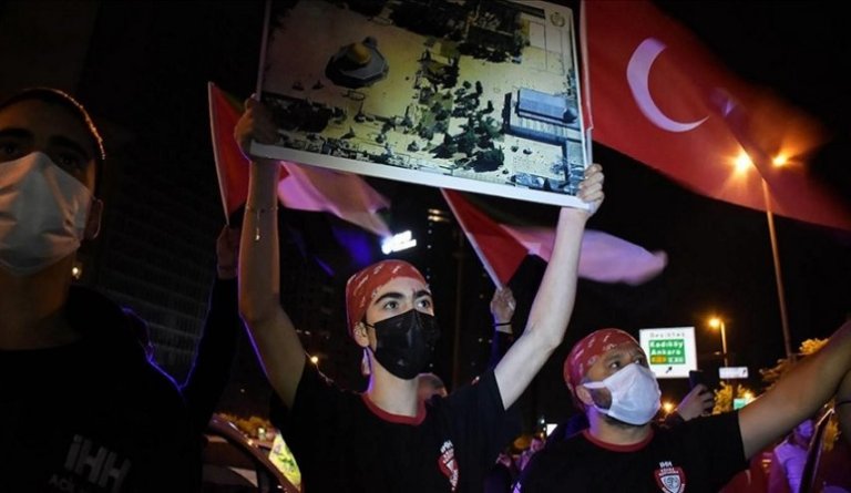 وأكد يافوز وهو متظاهر تركي:”الحق باق والباطل سيذهب ولن يبقى، التاريخ أثبت ذلك بان اصحاب الحق سينتصرون، وان الخائنين ستلفظهم شعوبهم”.