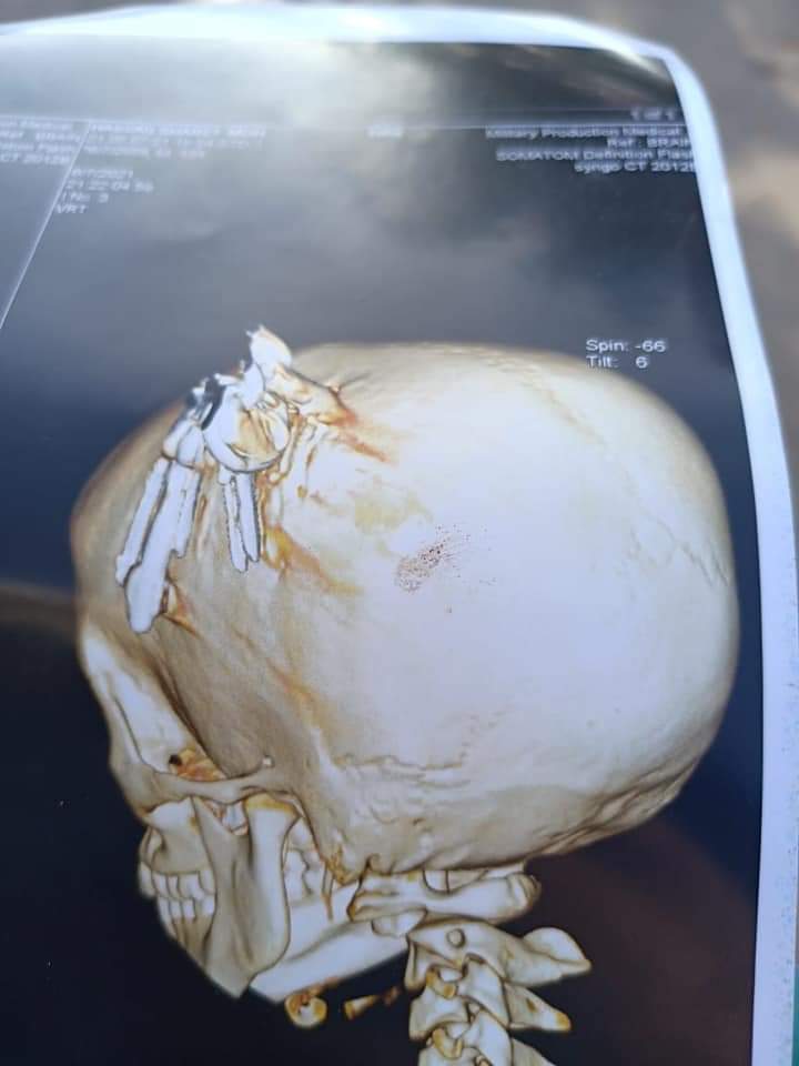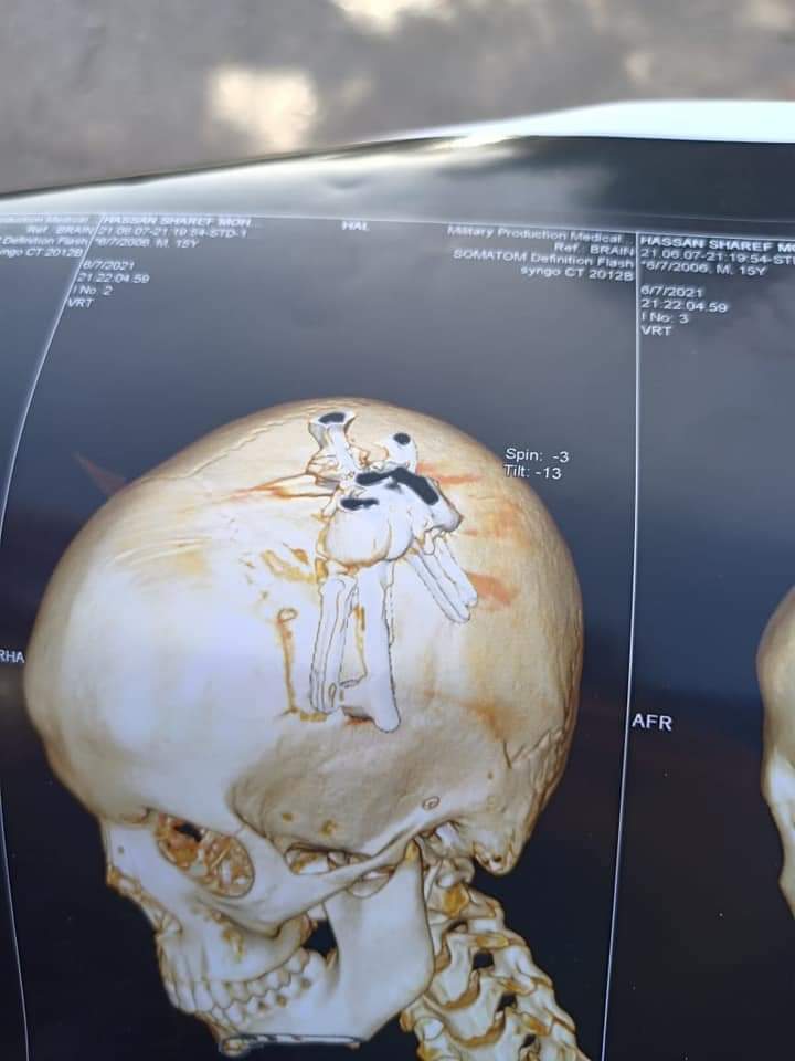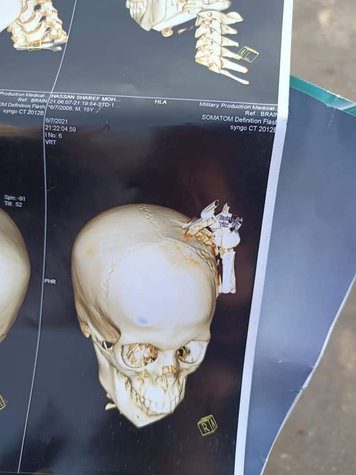 بالإضافة إلى ما سبق، نشر الإعلامي المصري، محمد نشأت، على حسابه في “فيسبوك”، صورا للصبي المصاب داخل المستشفى، وصور أشعة لرأسه، يظهر بعضها حجم الإصابة التي تعرض لها، ودخول المفتاح إلى رأس الصبي بعد اعتداء معاذ عيسى عليه.