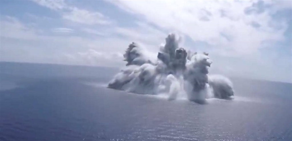 أظهر مقطع فيديو صادر عن البحرية الأميركية، انفجارا هائلا لقنبلة كبيرة وسط المحيط، تسبب بحدوث زلزال امتد لقرابة 160 كيلومترا في دايتونا بيتش، بولاية فلوريدا.
