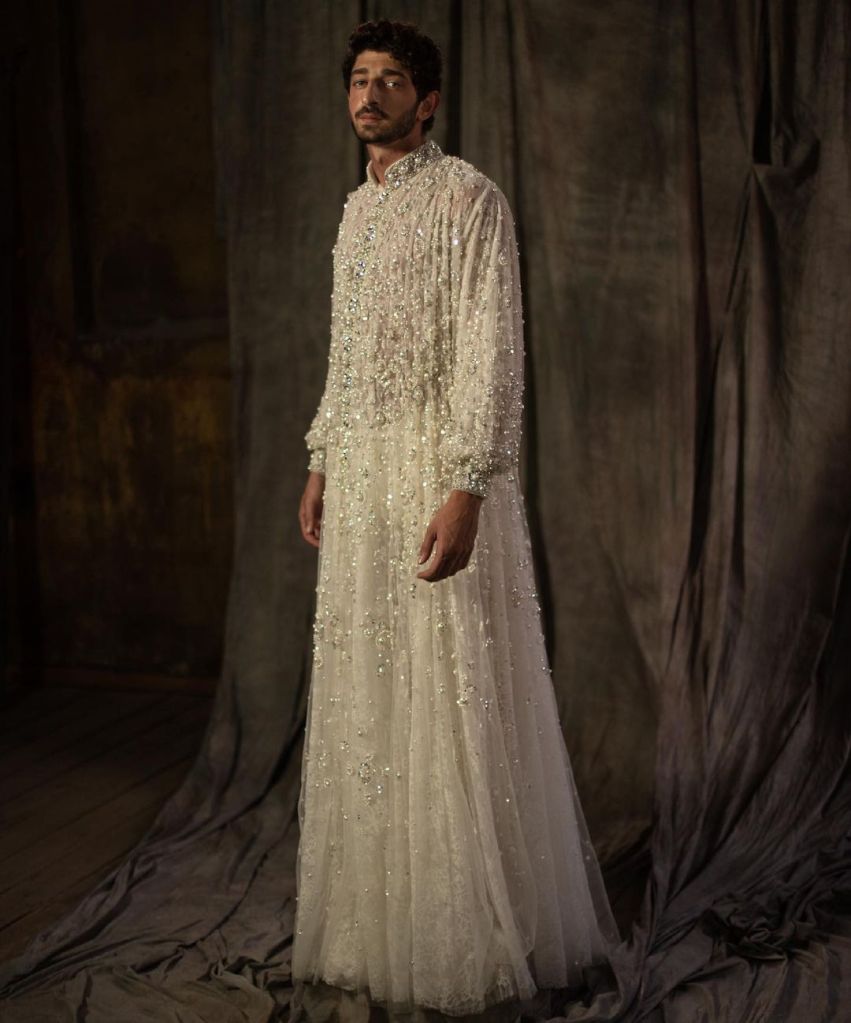 وفي التفاصيل نشر المصمم اللبناني علي يونس صورة لأحدث تصميماته وهو عبارة عن “فستان سهرة” للرجال، وظهر عارض الأزياء في الصورة مرتديًا فستان يشبه فستاتين الزفاف أو السهرة للسيدات وكتب علي يونس معلقًا: “الرجال مدعوون إلى عالم الأزياء الراقية. ثوب كوتور مطرز يدويًا على طبقات من التول والدانتيل ومزين باللآلئ والكريستال”.