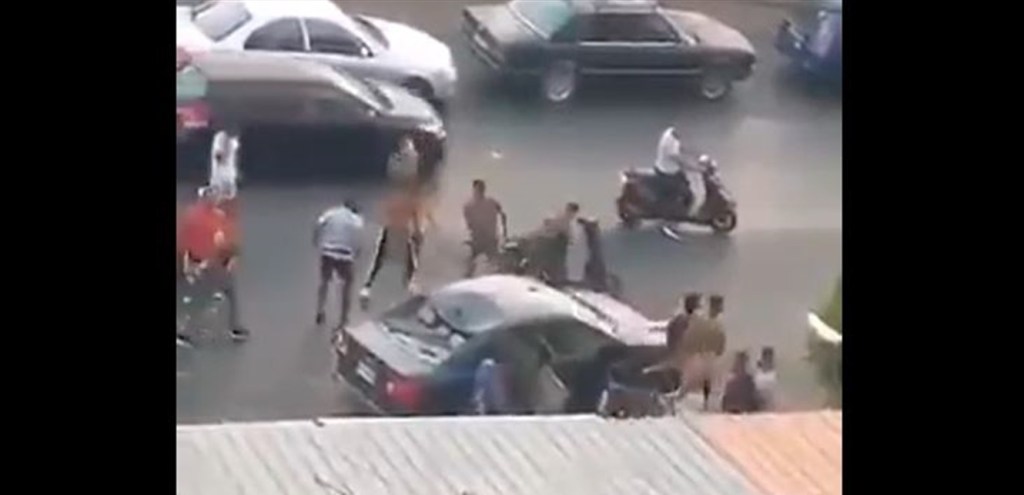 تناقل ناشطون عبر مواقع التواصل مقطع فيديو يظهر لحظة قيام مجموعة من الشبان بتحطيم سيارة عند أوتوستراد الناعمة أثناء قطع الطريق.
