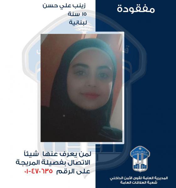 التي غادرت بتاريخ 16-7-2021، منزل ذويها الكائن في محلّة عين الدِلبة– برج البراجنة، ولم تَعُد حتى تاريخه.