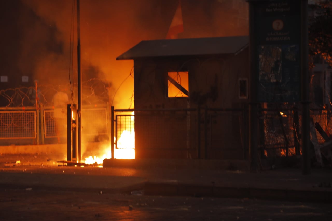 يقوم عددٌ من المتظاهرين بالإعتداء على مخفر الدرك في منطقة الصيفي، وفق ما أفاد “مراسلنا”.