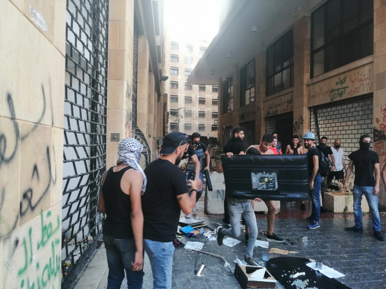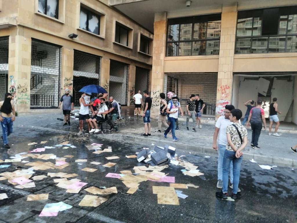 تتواصل الاحتجاجات في مرفا بيروت، والمحطة في هذه الساعة فندق لوغراي، حيث اقتحم المحتجون الفندق وسط رمي الحجارة وتكسير الواجهات.