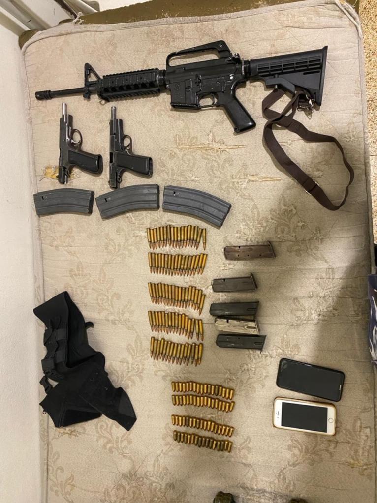 وضبطت بندقية نوع “م١٦” مع /3/ مماشط و/82/ طلقة، ومسدّسَين مع /5/ مماشط و/67/ طلقة عيار /9/ملم.