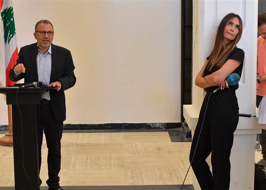 وظهرت بو خزام وهي تقوم بتعابير طريفة في وجهها بسبب طول وقت كلمة باسيل.