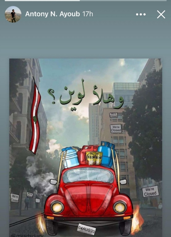 وقبيل وفاته بساعات، نشر أنطوني عبر خاصية الستوري على تطبيق واتساب، صورة كاريكاتورية تصوّر الأزمات التي يعاني منها لبنان وأبناؤه، وكتب عليها جملة “وهلأ لوين؟”.