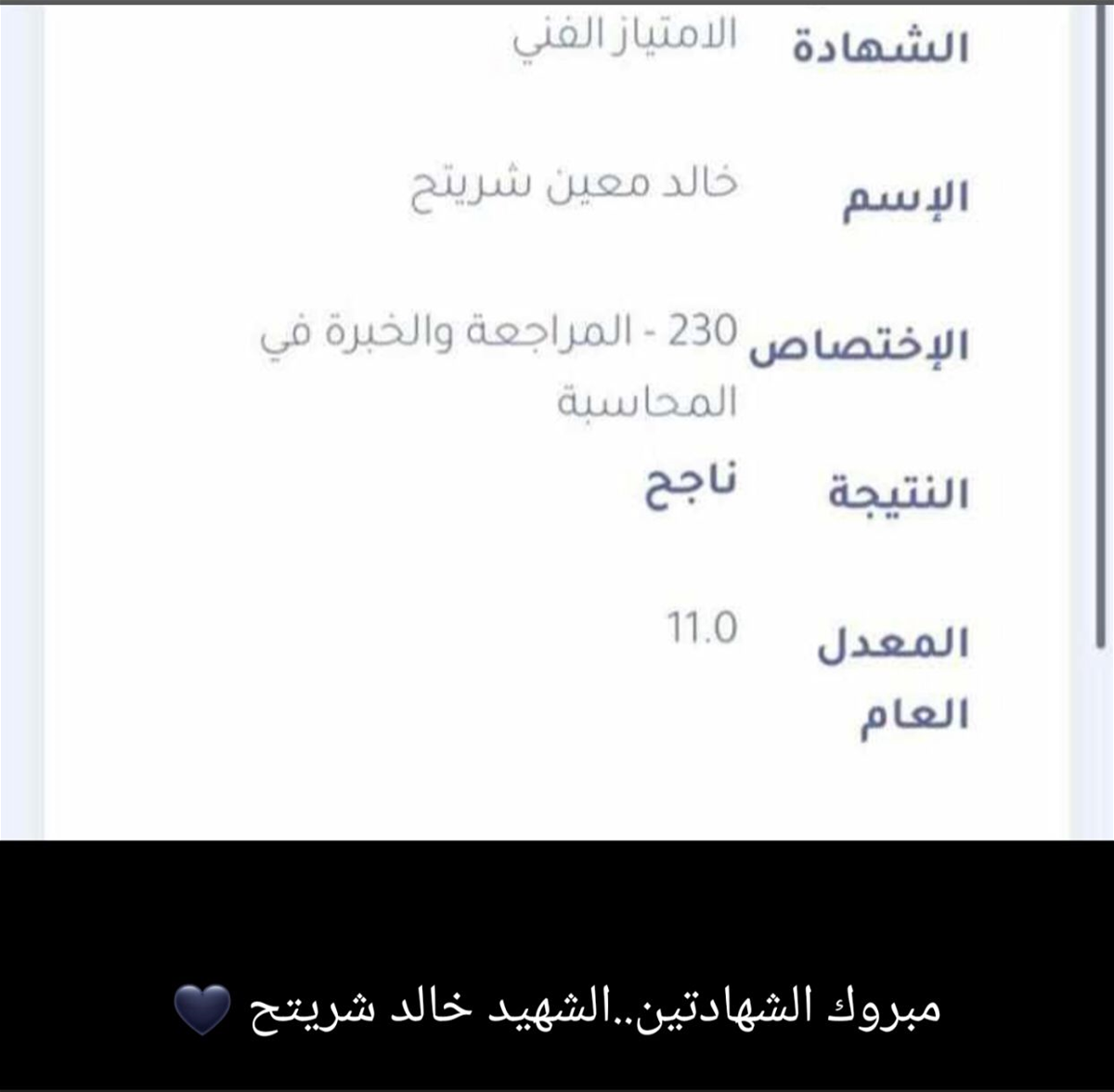 تتناقل مواقع التواصل الاجتماعي صورة لنتائج امتحانات شهادة الامتياز الفني، والعلامات التي تتضمنها الصورة تعود لمحمد شريتح وهو أحد ضحايا انفجار التليل، وتشير الصورة الى ان محمد اجتاز شهادة الامتياز الفني بعد خضوعه للامتحانات الرسمية في اختصاص “المراجعة والخبرة في المحاسبة”.
