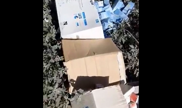 ويظهر الفيديو، الأدوية معلبة في كراتين تعود لشركة الأدوية اللبنانية الخاصة “Pharmaline”.