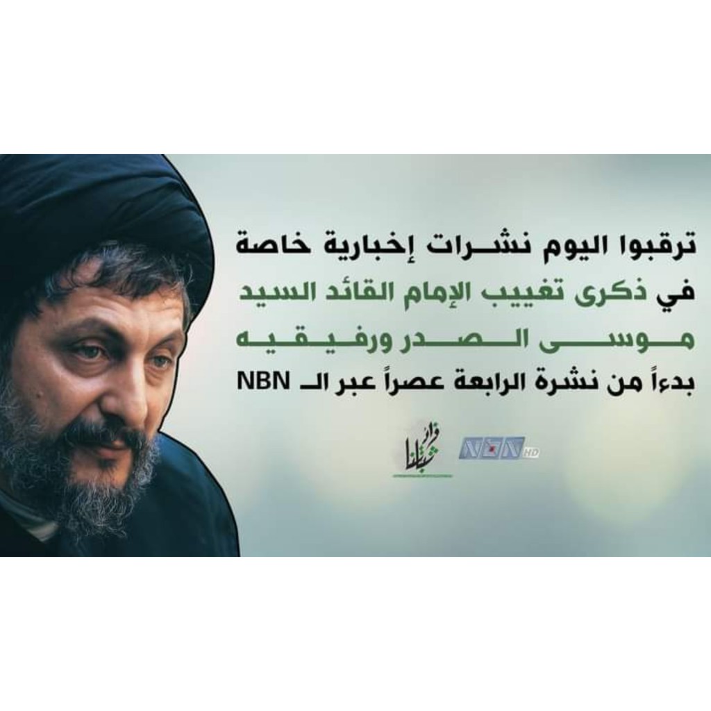 «news-online» ترقبوا اليوم نشرات إخبارية خاصة بـ ذكرى تغييب الإمام موسى الصدر ورفيقيه بدءاً من نشرة الرابعة عصراً عبر الـNBN 31 أوت 202131 أوت 2021 news leb مرتبط