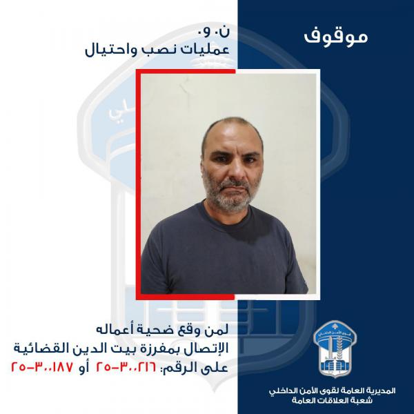 تُعمّم المديرية العامة لقوى الأمن الداخلي، “بناءً على إشارة القضاء المختص، صورة الموقوف: ن. و. (من مواليد عام 1974، لبناني) الذي اعترف بقيامه بعدّة عمليات نصب واحتيال ضمن محافظتي بيروت وجبل لبنان، مستخدمًا أسماء وهمية، ومنتحلاً صفة عسكرية”.