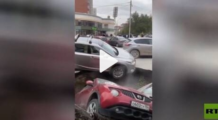 تسبب انهيار أرضي في أحد مواقف السيارات في مدينة نوفوسيبيرسك الروسية بسقوط سيارتين داخل حفرة، فيما كانت سيارة ثالثة عالقة على حافتها، وفقا لما تظهره لقطات شهود عيان من مكان الحادث.