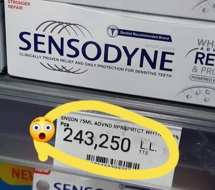 تناقل ناشطون عبر مواقع التواصل الاجتماعي صورة من إحدى الصيدليات الشهيرة في بيروت، تُظهر أن سعر معجنون الاسنان يبلغ 243 الف ليرة.
