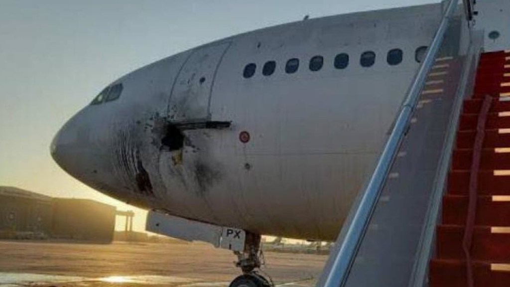 كما أضافت أنّ أضرارًا لحقت بطائرة ومنشأة من جراء إطلاق صواريخ على مطار بغداد، مشيرة إلى أنّ الطائرة كانت خارج الخدمة، وأنّ تفعيل نظام منع الصواريخ أسقط عددًا منها في محيط المطار.