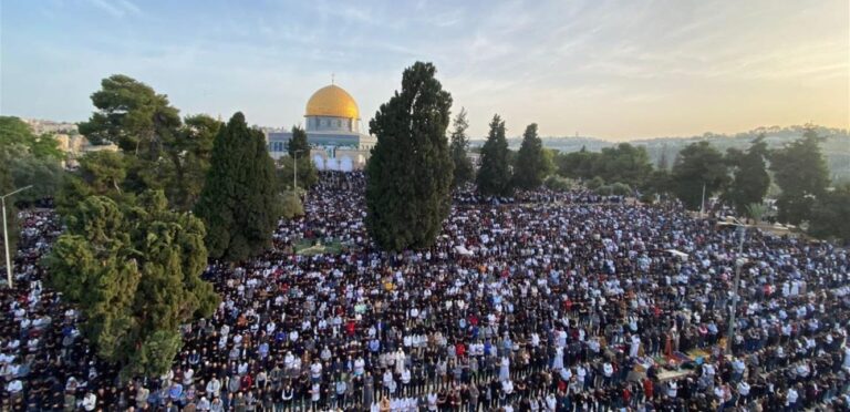 أدى عدد كبير من الفلسطينيين صلاة عيد الفصح في باحات المسجد الأقصى في القدس, ووفق تقديرات وكالة “صفا” الإخبارية الفلسطينية، فقد تجاوز عدد المصلين عبتة الـ200 الف شخص.