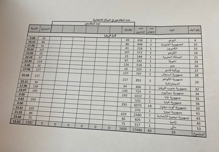 وأضاف بو حبيب من وزارة الخارجية: في أوروبا اقترع 20% حتى الآن”، موضحًا أنه “في فرنسا اقترع 4232 شخصاً وفي ألمانيا 3482 شخصاً وفي بريطانيا وإيرلندا الشمالية 1282 مقترعاً وفي باقي الدول لا يزال عدد المقترعين تحت الـ1000”, وتابع: “أما في قارة أفريقيا نسبة الاقتراع متدنية فهي حوالي 13%”.