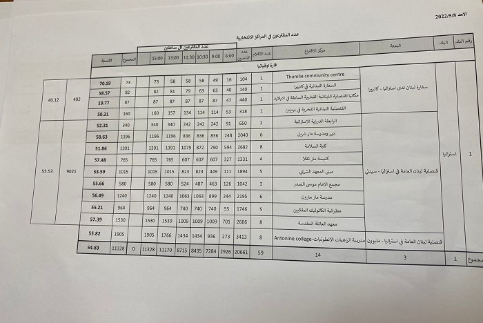 اعلن وزير الخارجية عبدالله بو حبيب أنّ نسبة الإقتراع في أستراليا بلغت حوالي 55%”، مشيرًا الى أنه “في دبي النسبة تبلغ 41% وفي أبو ظبي 56%، ومن المتوقّع أن تفوق النسبة الـ80 في المئة في الإمارات حيث المجموع هو 44,66 في المئة حتى الآن وهو رقمٌ كبيرٌ جدا”..