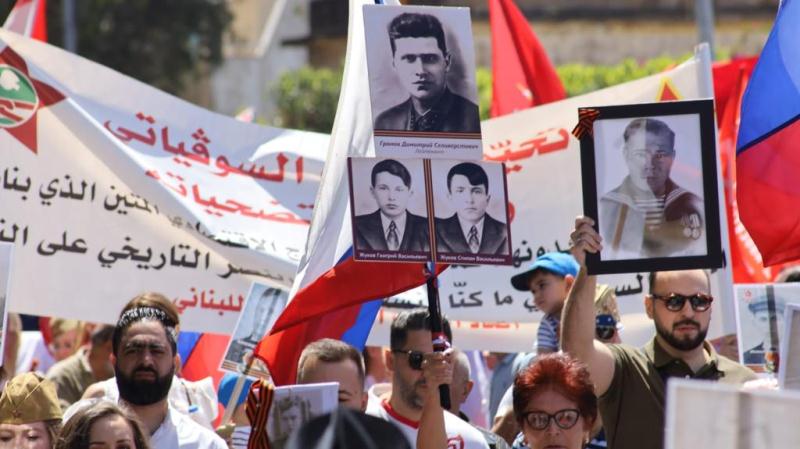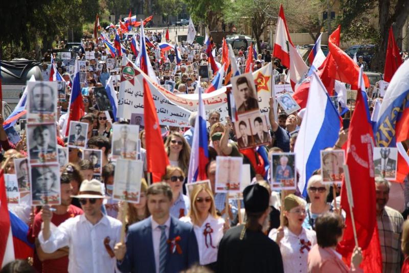 تم تنظيم مسيرة من السفارة الروسية الى المركز الثقافي الروسي في بيروت احتفالًا بيوم النصر على النازية الذي يصادف في ٩ ايار، وذلك بمشاركة السفير الروسي في لبنان الكساندر روداكوف.