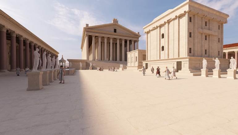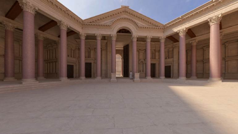 وليست الأعمدة الستة التي تظهر في صور قلعة بعلبك، ويعرفها زوار معبد جوبيتر الروماني، فيه سوى غيض من فيض الأعمدة الكثيرة التي كانت تتصدر واجهته قبل قرون بعيدة. كما يكتشف السائح الافتراضي أن معبد باخوس الروماني في قلعة “مدينة الشمس” كان ذا سقف خشبي. ومن على سطح أحد أعمدة جوبيتر على ارتفاع نحو 25 متراً، يشاهد الزائر مدينة بعلبك المعاصرة وما يحيطها.